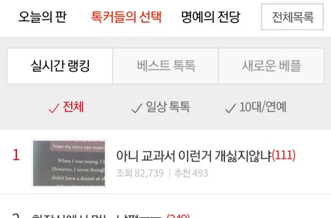 다시 글 쓴 목록 보니까 4개 중에 3개 톡선이더라...나 뭐냐ㅋㅋㅋㅋ 10대이야기 처음 글 써보는데