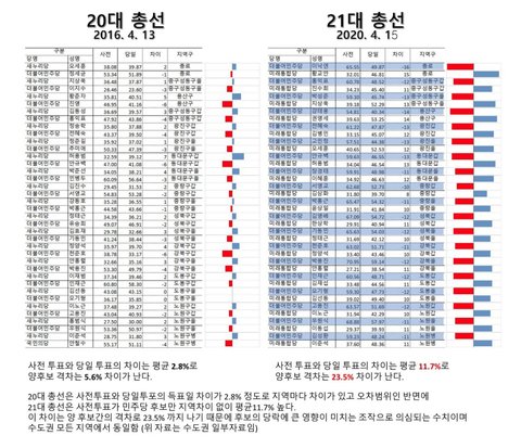 여당 지지자들이 우연히도 모든 지역에서 사전투표에 우르르 몰렸던 것인데 황당하다!