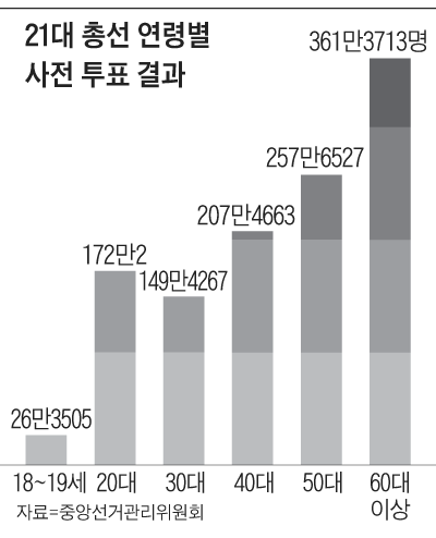 참고로 이번 21대총선은 보수인 60대이상이 사전투표율이 가장 높았다.