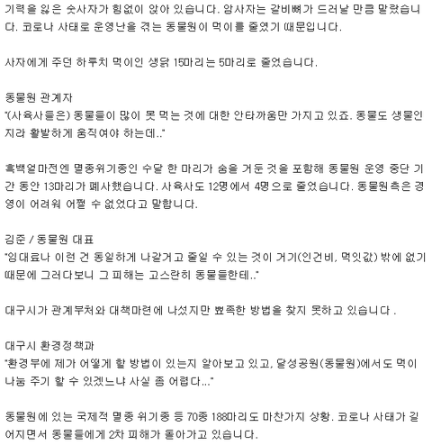코로나로 문닫은 동물원에서 굶어 죽어가는 동물들ㅠㅠ