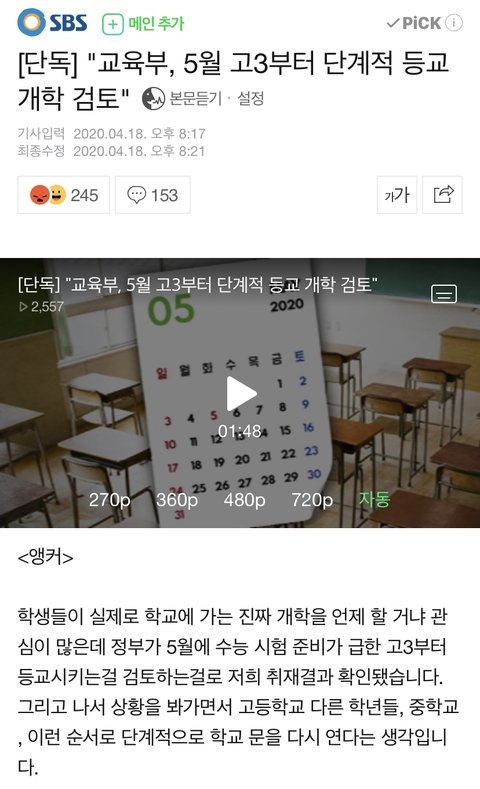 생각 조카 없네 등교개학을 언제까지 미루냐 이런 생각으로 교육부에서 등교 추진하려고 하던데 가을학기제가 답이라고... 전교생 기숙사 학교 이런 덴 어떡함 ㅋㅋ ㅠ
