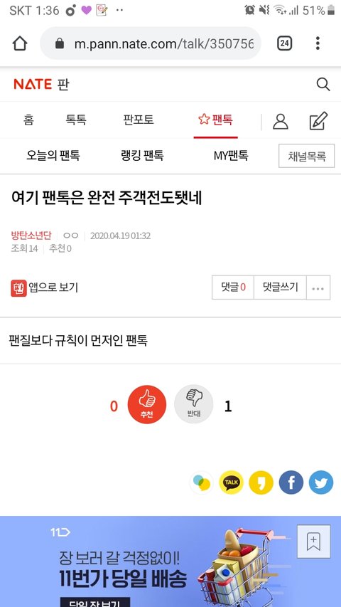 ⚠️조방)밑×3 "여기 팬톡은 완전 주객전도됏네" 여기로