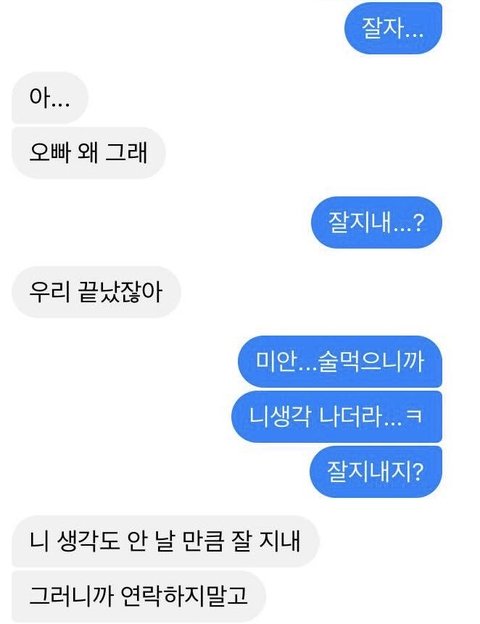 헤어징ㅈㅣㅣ 두달짼데 아직 못잊ㅈ어서 술먹고 페메 보냈어 잘 지낸ㄷㅏ니까 다행이ㅣ야