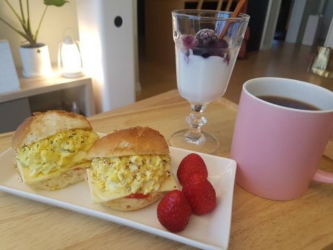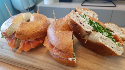 새벽배송으로 산 훈제연어로 연어베이글샌드위치!!