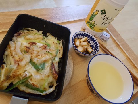 그럴땐 미니 파전 냉동실에 잠자고 있는 새우랑 오징어 넣고 1장 지져...