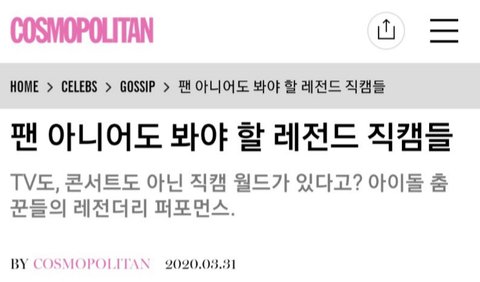직캠 흥했다고 기사 여러번 나더니 코스모폴리탄이 인증함ㅋㅋㅋ
