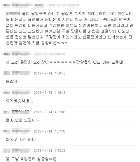 이럼에도 에스엠과 ㄹㅂㅅ 작곡가를 욕하겠다면 뭐.. 말리진 않겠음 하지만 엑소와 엑소엘은 이 일로 욕먹을 이유가 전혀 없음 이성적으로 생각해보길