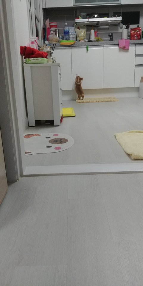 싱크대쪽에 사료를 불려놨지요