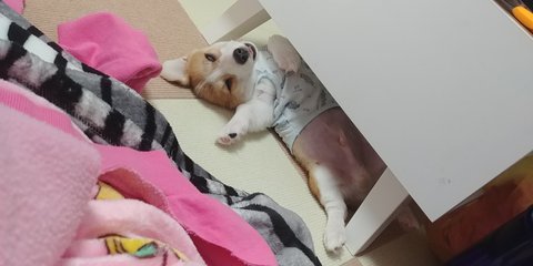 강아지 옷만들기 책보면서 입던옷으로 샘플 만들던중 갑자기 자는 모델분