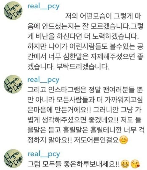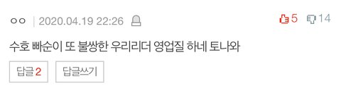 ㄱㅆ 난 이 글을 수호가 이렇게 힘들어하니 이쁘게 봐달라 이런식으로 쓴 글 아님 이런 케이스를 사례로 악플에 상처받는 연예인들은 널렸고 악플의 심각성을 1도 모르는새끼들한테 악플을 보고 어떤 표정을 짓고있는지좀 눈깔뜨고 봐라 이런 취지로 쓴거임근데 이렇게 대가리빈거 티내는 댓글은 박제시켜버림