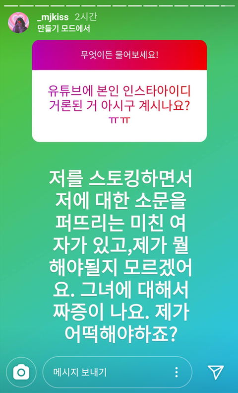 어디 스태프랑 찍은 옛날 사진 가지고 염불 외는 사생 계정 갖고 퍼트리면서 개지랄이야 이건 고소감이다 저 사람 일반인이고 엄연히 남친 있는 사람 인스타 파내서 정국이랑 역는 개수작