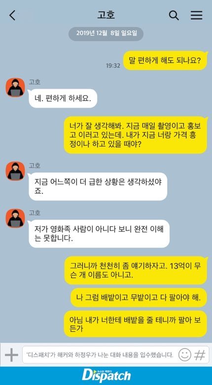 ㅋㅋㅋㅋㅋㅋㅋㅋㅋㅋㅋㅋㅋㅋㅋㅋㅋㅋ해커도 ㅈㄴ당황했을듯ㅋㅋㅋㅋ 하정우 무슨 친구랑 대화하는거같음 친화력 개좋네