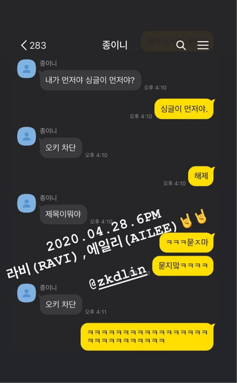 아이돌이든 일반인이든 친구랑 톡하는 말투는 비슷한듯ㅋㅋㅋㅋㅋㅋㅋㅋㅋ