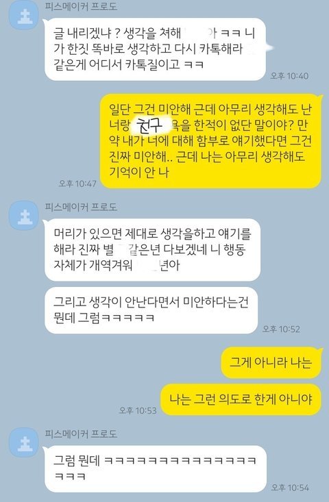 내용 간략히 설명하자면 내가 그전까지 6년친구랑 엄청 친했어 친한만큼 많이 싸우는데 싸우는 만큼 격하게 말한다고 해야하나 그런게 있어 나랑 걔 사이엔 ..ㅇㅇ