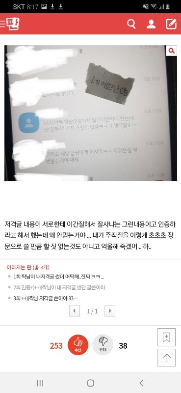+ 아니라고 하고 미안하다고 하는데 못믿겠다는식이야 ㅇㅇ ... 댓글 고마워 다 보고 있어 ... 진짜 너무 곤마워 ..