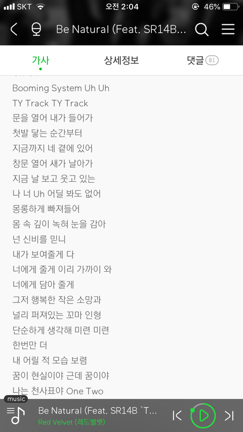 난 최근에 알았거든.. 비 내추럴에 중간에 랩이 있는데