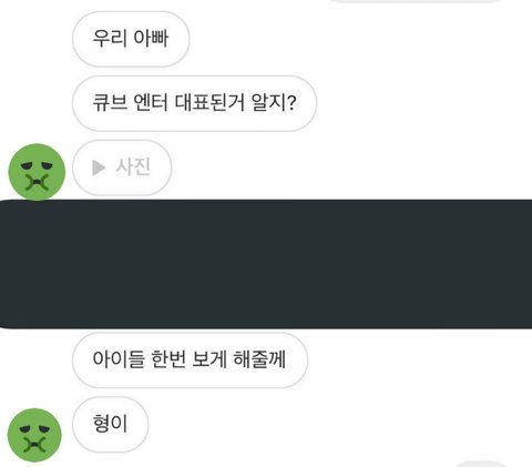 엥 지가 뭔데 아이들 보게 해줄게 ㅇㅈㄹ임?ㅋㅋㅋㅋㅋ 이번 큐브 회장 범죄자라며ㅋㅋㅋㅋㅋ 역시 그아빠에 그 아들이네