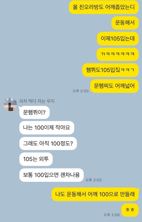 ->이유는 또 자연스럽게 다가가야 합니다! 그래서 저는 제 어깨 얘기를 하면서 아주 자연스럽게 내어깨를 말도 안되게 오버 사이즈로 만든다는 터무니없는 이야기를 꺼냈어요