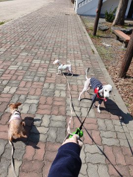 혼자 세마리 산책은 3단 분리로 녹초가 됩니다...ㅋ