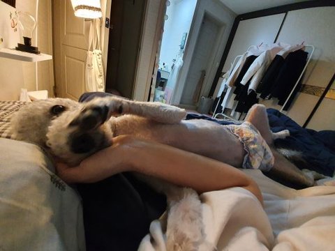 아침에 일어나면 매너벨트 차고 침대에 올라와서 애교떨어요ㅜㅜ 세상귀엽 ㅎㅎ