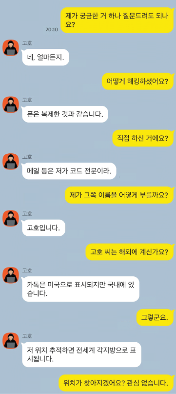 사거 당시 해커와 주고받은 메신저 대화 내용이 공개됐다.
