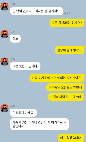 협박에 이허 식사는 잘 챙기라는 해킹범의 말에는