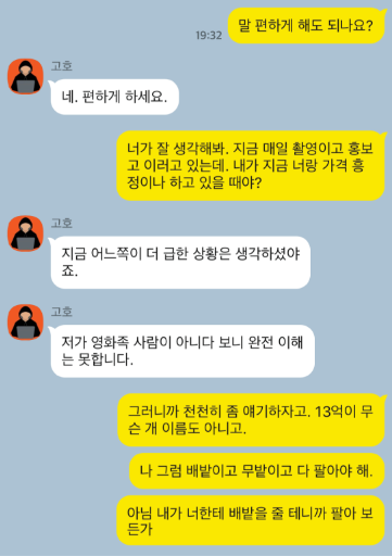 하정우와 해킹범의 메신저 대화 내용을 일부 공개했다.