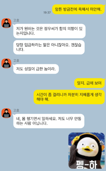 이후 하정우는 해킹범에게 펭수 이모티콘을 보내는가 하면,