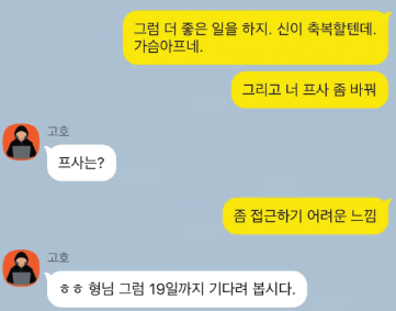 "형님 쪽에서 상의하고 텔레그램으로 답장 달라,