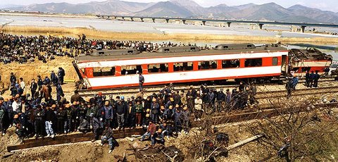 객차 앞쪽이 완전히 찌그러서 철덩어리가 구겨진 휴지처럼 됐었고,