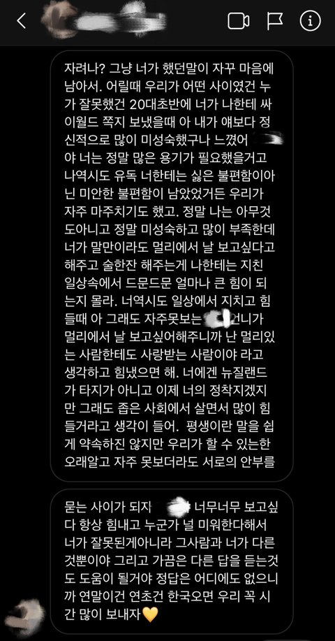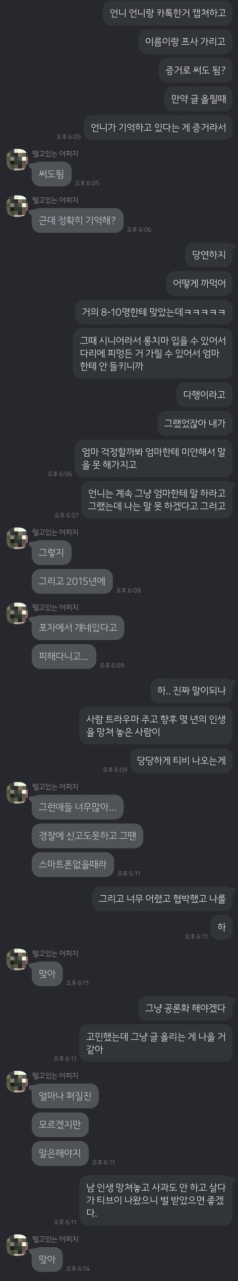 폭행사건 가해자였던 다른 언니가 진심으로 사과한 후 잘 지내고 있습니다만 주요가해자는 이런 사과메시지 하나 없었습니다.