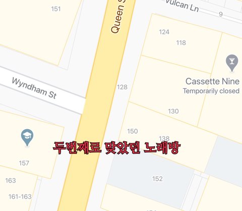 A씨에게 개인적으로 슬리퍼로 맞은 사건이 아니라 아오테아 광장에서 8-10명이 모인 자리에서 맞았다고 적어두었습니다. 다른 날 또 다시 불려간 주차장에서 자리를 옮긴 곳이 노래방이고요. 노래방에서 집단 폭행을 당했을 당시에도 A 는 그 자리에 있었고 저를 때리기도 구경하기도 하였습니다.