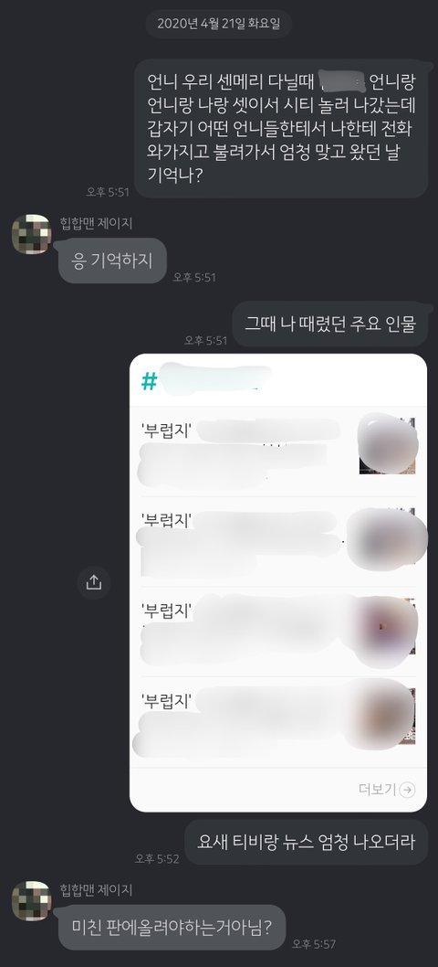 10년 이상 전 일이기 때문에 마땅한 증거가 없어 당시 저와 시티에 같이 나갔던 선배와 나눈 카톡 그리고 그때 가해자였지만 후에 사과하고 잘 지내고 있는 언니에게 온 메시지 그리고 제가 똑똑히 기억한다는 걸 증명하고 싶어 폭행당한 장소 위치를 캡처해서 올립니다.