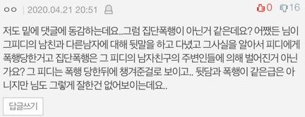 그런 과거를 가지고 TV에 성실하고 성공한 사람이라며 포장되어 나오고 한 편으로는 그 여자가 아깝다며 불쌍하다고 소비되는 것조차도 피해자인 저는 다 상처입니다. 제발 폭행 가해자가 양심이 있다면 적어도 TV에 만큼은 당당하게 나오지 못 하는 세상에서 살고싶습니다.
