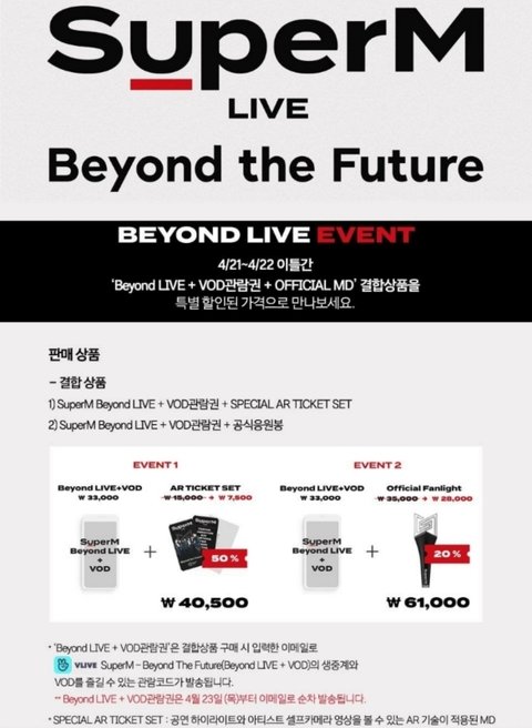비욘드 라이브 (Beyond Live)라고 스엠이랑 네이버가 손잡고 무관중 공연을 브이앱을 통해 온라인으로 생중계하는 건데