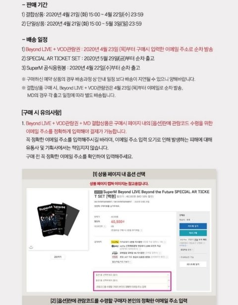 아래 상세페이지는 우선 뜬 슈퍼엠 것만 참고로 가져옴