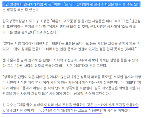 '예쁘다'라는 표현도 성희롱의 일종임. 그것도 초면인 상태에서 저런 말 하는 거임.
