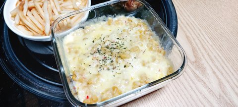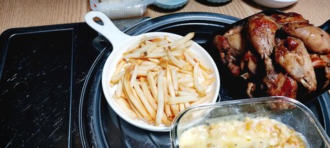 여기 치킨 1마리와 콘치즈팬이랑 감튀서비스 주세요~~~~