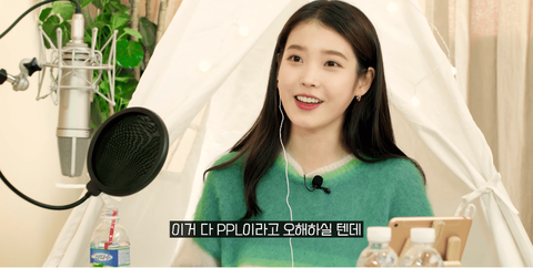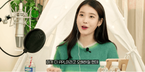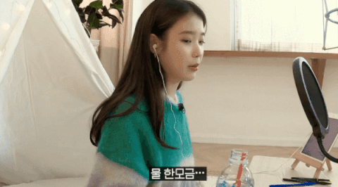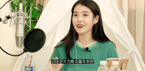 아이유 앞에 있는 물건들 때문에