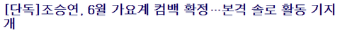 복수의 가요관계자에 따르면 조승연은 6월 둘째주 솔로 컴백을 목표로 앨범 준비 막바지 단계에 돌입했다.