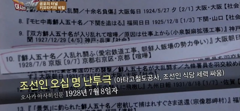 오사카 아사히 신문에 의하면 1928년 7월 8일 조선인 50명이 키요타키 터널에 있는 아타고 철도공사 현장에서 일본인과