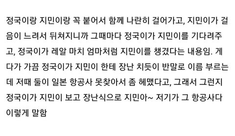 ㄱ이랑 ㅈ이 둘이 도쿄여행 갔을때도 둘이 정국아 지민아 이렇게 불렀다는데 그거 찾고싶은데 안나온다..ㅅㅂ..