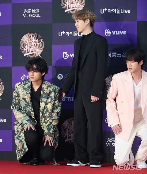 이때 레드카펫에서 태형이가 옷에 발이 걸려서 넘어졌는데 석진이가 태형이 창피할까봐 같이 무릎 꿇어준거...ㅜㅜㅜㅜ 김석진 진짜 최고라고ㅠㅠ