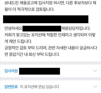 취업 적극 채용할테니 입사 지원을 해달라는 제안이었습니다.