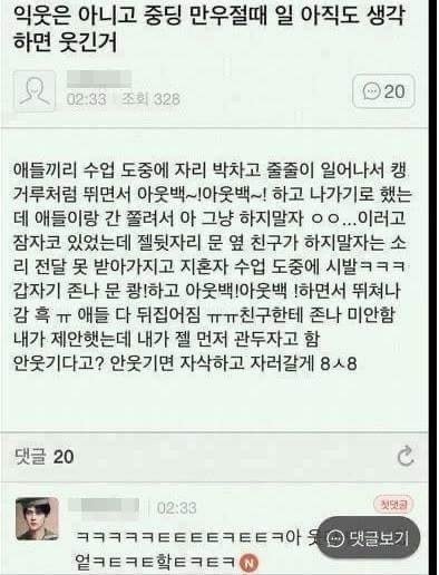 재미 없을지도 모르겠지만 갤러리에 있는 웃긴 짤 다 풀게!! 재미없어두 욕하지 말아줘 ㅠㅠ 댓글로 더 풀게 참고로 내일은 설레는 짤 풀테니까 많이 보러와주라❤️❤️