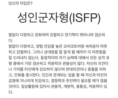 아니 내 최애 ㅈㄴ 인싸같은데 isfp래..조카 충격받음.