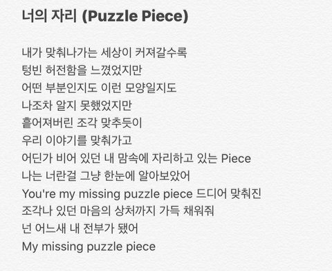 너의자리가 제목이고 영어로는 puzzle piece인 것도 너무 좋음..