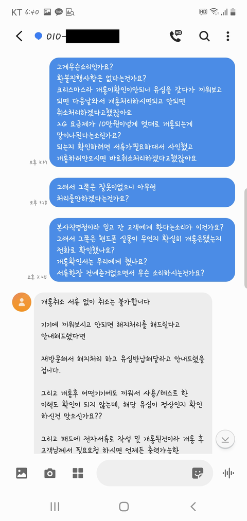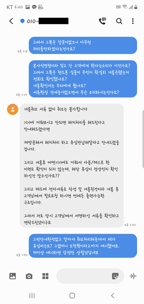 9. 해당 지점에서는 담당자가 실수로 개통취소를 안한것 같다며 연락준다고함.