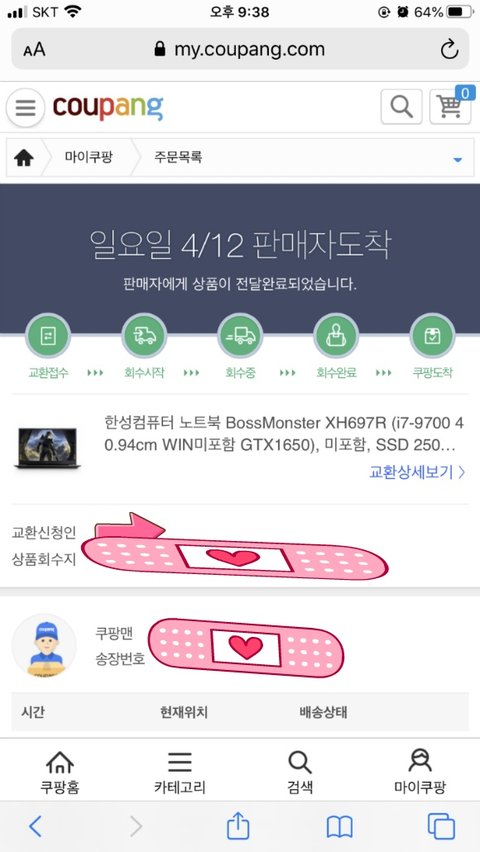 당장 쿠팡에 전화해서 잘못된 모델이 왔다고 하고, 오배송한 쿠팡측 잘못임을 확인받았습니다.