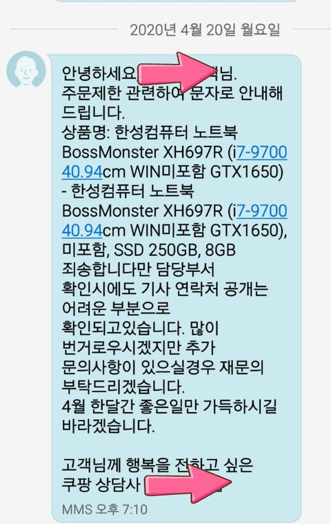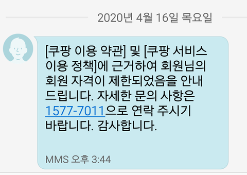 쿠팡으로부터 문자 한통이 왔고